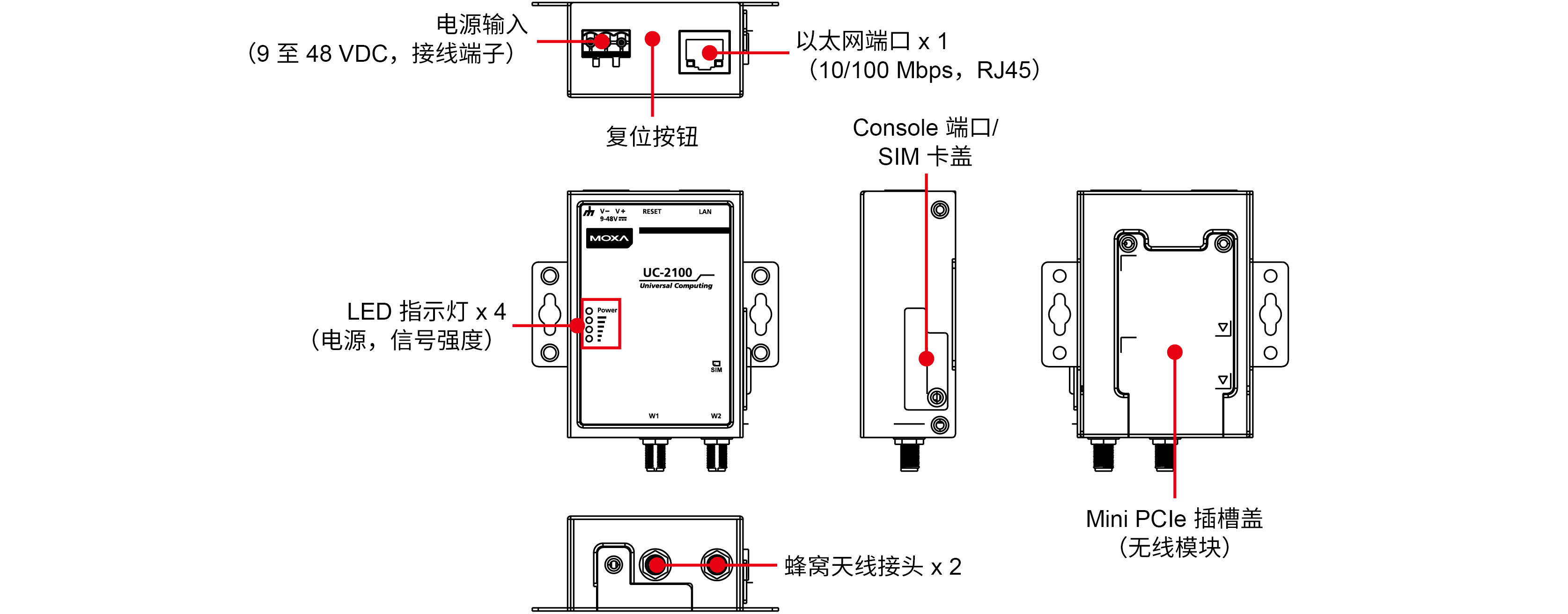 • Mini PCIe 插槽,可用于 Wi-Fi/蜂窩模塊 (UC-2104)