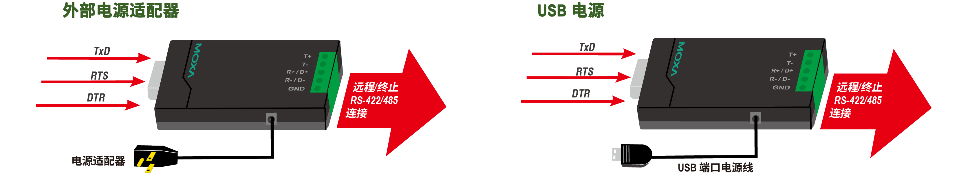 TCC-80/80I 串口轉(zhuǎn)換器無需外部電源即可實現(xiàn) RS-232 和 RS-422/485 之間的完整信號轉(zhuǎn)換。這款轉(zhuǎn)換器可將 RS-232 TxD 和 RxD 信號轉(zhuǎn)換為半雙工 2 線 RS-485 和全雙工 4 線 RS-422/485 差分信號。