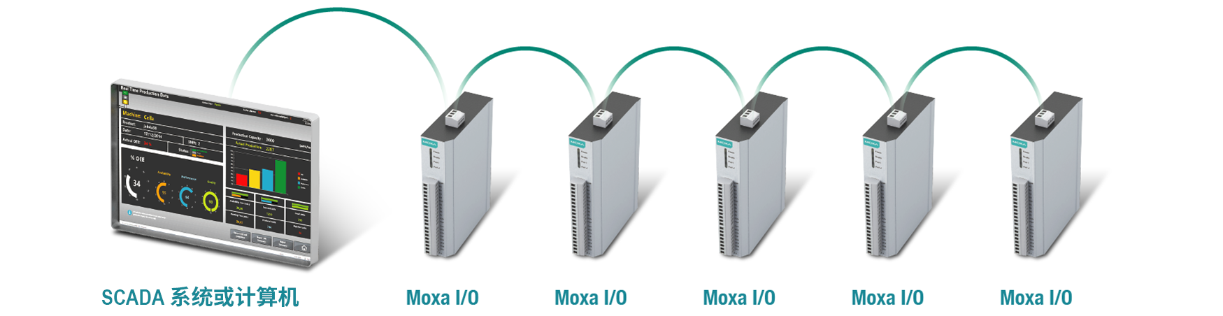 這款工業(yè)以太網(wǎng)遠(yuǎn)程 I/O 配備 2 個(gè)交換式以太網(wǎng)端口,允許數(shù)據(jù)通過可擴(kuò)展的菊花鏈以太網(wǎng)遠(yuǎn)程 I/O 陣列,向下自由流向另一個(gè)本地以太網(wǎng)設(shè)備,或向上至服務(wù)器。工廠自動(dòng)化和監(jiān)控系統(tǒng),以及隧道通信等應(yīng)用可利用菊花鏈以太網(wǎng),通過標(biāo)準(zhǔn)以太網(wǎng)線纜構(gòu)建多點(diǎn) I/O 網(wǎng)絡(luò)。許多工業(yè)自動(dòng)化用戶都對(duì)現(xiàn)場(chǎng)總線解決方案中常用的多點(diǎn)配置十分熟悉。ioLogik 遠(yuǎn)程 I/O 的菊花鏈功能不僅提高了遠(yuǎn)程 I/O 應(yīng)用的可擴(kuò)展性和安裝可能性,并通過減少對(duì)單獨(dú)以太網(wǎng)交換機(jī)的需求降低了總體成本。這種菊花鏈設(shè)備裝置方式也將減少了總體人力和布線成本。
