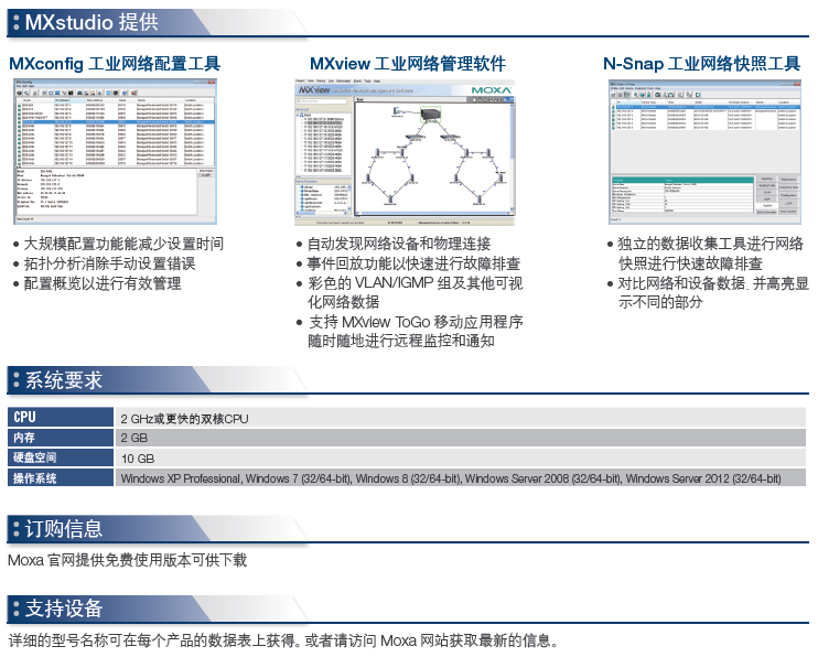 • MXconfig,MXview及 N-Snap 支持簡易及快速工業(yè)網(wǎng)絡(luò)管理