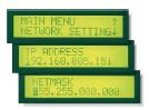 NPort? 5400 頂部面板內(nèi)置 LCD 顯示屏,并提供四個按鈕可用于數(shù)據(jù)輸入、配置和操作模式選擇。LCD 顯示屏可顯示服務器名稱、串口編號和 IP 地址、輸入或修改 IP 地址、子網(wǎng)掩碼和網(wǎng)關等參數(shù)。(寬溫型號無配置 LCD 顯示屏。)
