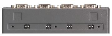 NPort 5400 系列提供 RS-485 應用所需的可調(diào)節(jié)終端電阻和上拉/下拉電阻。在某些嚴苛環(huán)境中,可能需要采用終端電阻來去除串口信號的反射,也可能需要調(diào)節(jié)上拉電阻/下拉電阻來保持電子信號的完整性。由于任何電阻值都無法兼容所有環(huán)境,NPort? 5400 設備聯(lián)網(wǎng)服務器底部面板配有四組 DIP 開關,方便設置終端電阻和上拉/下拉電阻的電阻值。