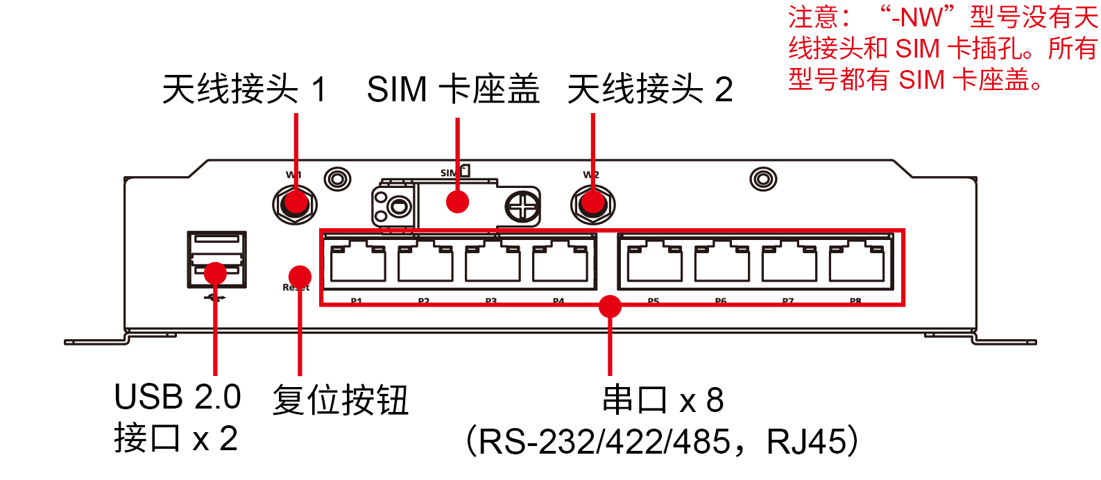 串口: RS-232/422/485 端口 x 8,軟件可選 (RJ45)