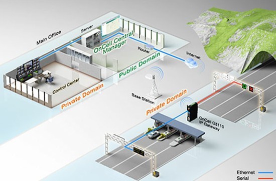 在國內(nèi),移動電話運營商只為移動設(shè)備提供私有IP地址。配置私有IP地址的移動設(shè)備配置可以訪問互聯(lián)網(wǎng),但是卻無法通過網(wǎng)絡(luò)進(jìn)行管理,因為私有IP地址是隱藏的。Moxa的OnCell G3110A IP網(wǎng)關(guān),不僅克服了這一問題,更可同時把支持串口的CMS設(shè)備和遠(yuǎn)程主機(jī)連接在網(wǎng)絡(luò)里。一旦建立了連接,CMS和遠(yuǎn)程主機(jī)可以通過預(yù)先建立的連接進(jìn)行通訊。此外,OnCell Central Manager可由客戶自主安裝或通過Moxa進(jìn)行管理,允許網(wǎng)絡(luò)管理員從任何地方通過IP網(wǎng)絡(luò)訪問他們的CMS,包括因特網(wǎng)。
